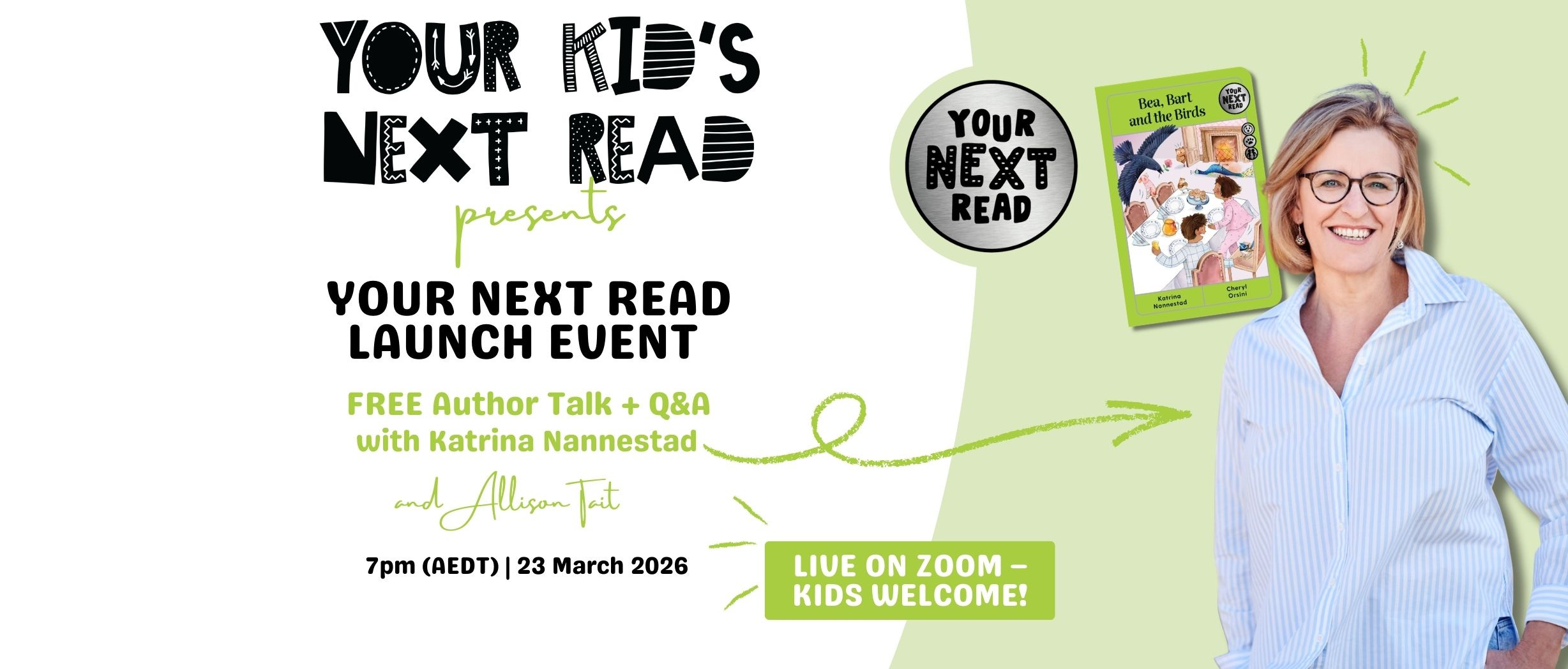 Award-winning, bestselling author Katrina Nannestad joins Team YKNR live on Zoom for an author talk about writing, creativity and her books, including ‘Bea, Bart and The Birds’, illustrated by Cheryl Orsini, and one of four launch titles in the Your Next Read Silver junior fiction series.